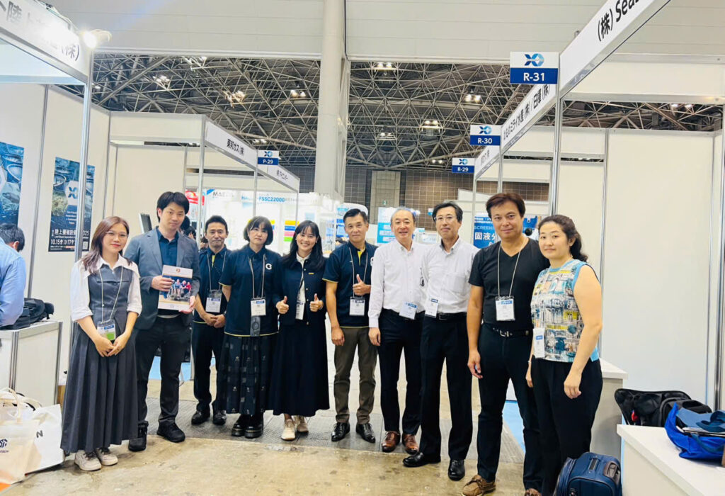 さて今回は「株式会社Seaside」様のブースをお借りし、弊社もベトナム養鰻場で採用しており、日本市場の代理店でもありますAQUA MINA CO., LTDのシート水槽を日本市場へ周知するため、IOT水質モニタリングシステムで地域創生へ躍進する「CMエンジニアリング株式会社」様と修洋商事株式会社を含む4社でAQUA MINA CO., LTDのシート水槽をPRに努めました。